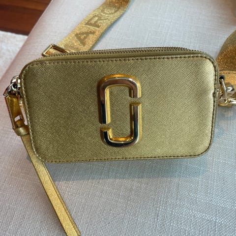 Marc Jacobs skulderveske for dame i lær. Vesken har rektangulær fasong med stor metall-logo på fronten. Den leveres med lenkestropp i metall som kan bæres over skulderen eller på tvers av kroppen. Passer til oppbevaring av mindre eiendeler som mobil, nøkler og lommebok ved hverdagsbruk eller til enklere anledninger.