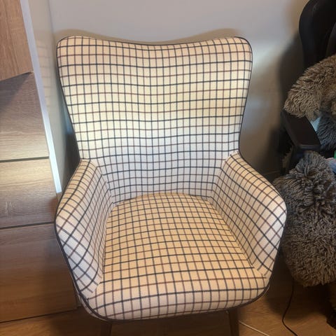 Lenestol BIERSTED rutemønster beige/brun stoff