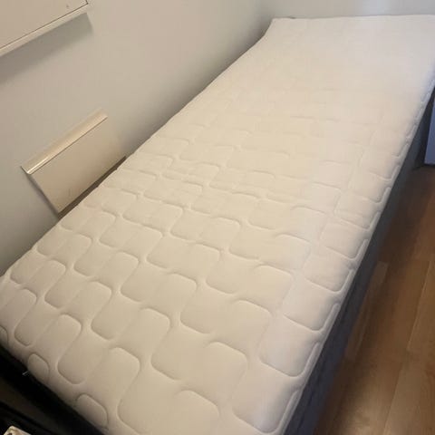 IKEA seng med ribbebunn, madrass og overmadrass.