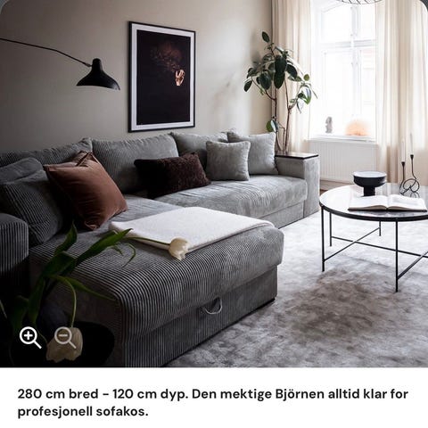 Sofa fra november 2025, tatt i bruk i januar 2026 i ny leilighet. Den ble dessverre for stor og må selges. Kun brukt en måned.