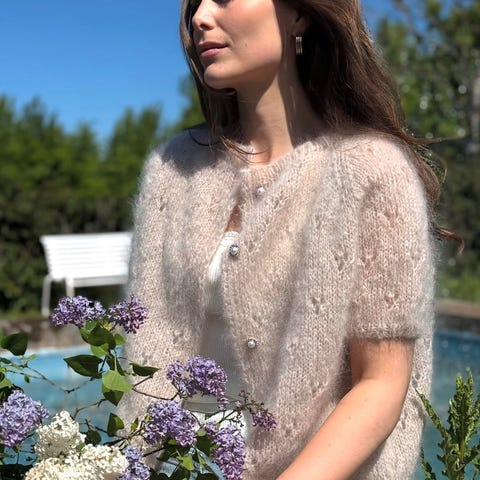 BALLERINA cardigan,fra Knitteriet, en skjønn sommerjakke, er strikket med en tråd mohair på pinne 6 mm. Strikket med Katia ingenue garn -kvalitets garn.