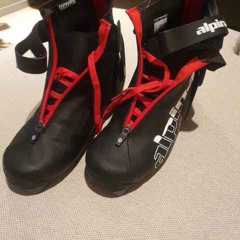 Alpina R Combi langrennsstøvler i størrelse 41. Modellen er en kombistøvel egnet for både klassisk og skøyting. Overdelen er i syntetisk materiale med snøring og glidelås-lukking i front, samt borrelåsreim over ankelen for bedre støtte. Innvendig fôr er i tekstil, og sålen er i syntetisk materiale. Fargekombinasjon hvit og rød med Alpina-logo på siden. Passer til bruk i preparerte skiløyper.
