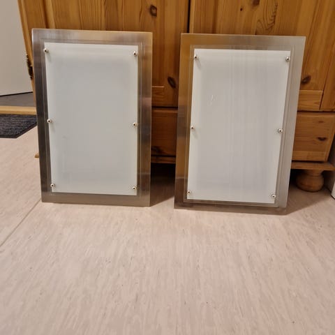 2 stk pene røykfargede glass taklamper selges. Lange ledninger slik at de passer overalt. Lyspære følger med kr 600 for to stk lamper inklusiv lyspære. Ca 30 cm i bredden og ca 26 cm i høyden. To stk for kr 400.