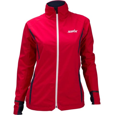 Bjørn Dæhlie langrennsjakke for dame i rød farge. Jakken har hel glidelås i front, høy krage og to glidelåslommer i siden. Kun brukt en gang. Str L.