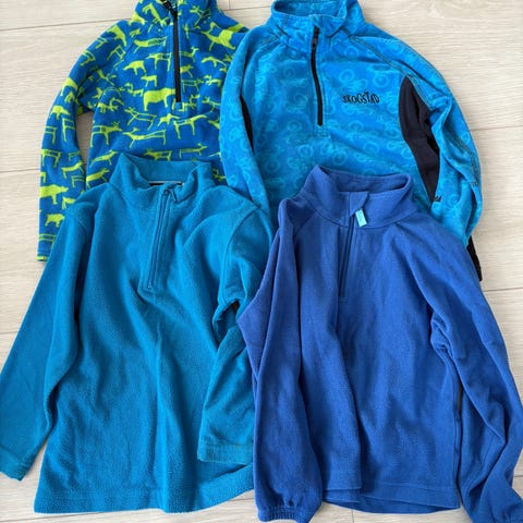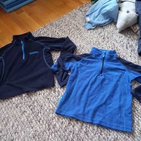 Fleece Genser med halv glidelås barn grønn og blå