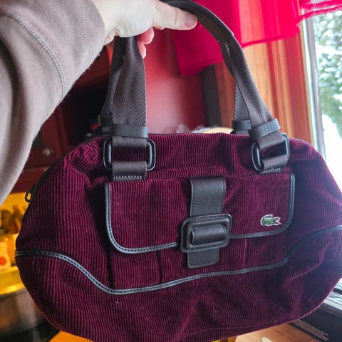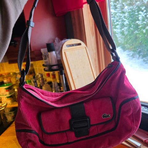 Den er brukt men ingen slitasje. Kun noen flekker inni på stoffet