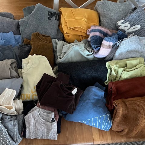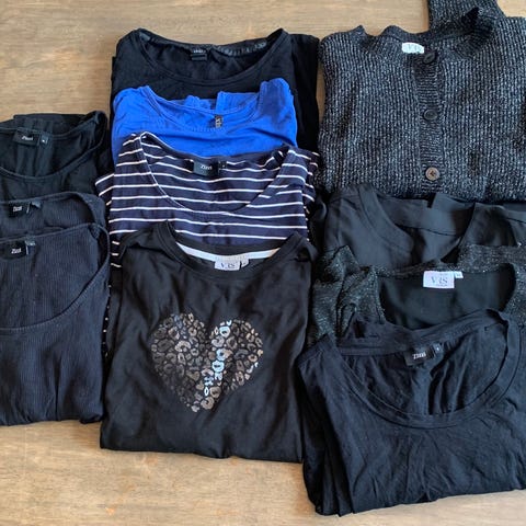 Veldig mye fint tøy selges samlet, alt fra gode gensere, mange cardigans utallige topper/tunikaer.
