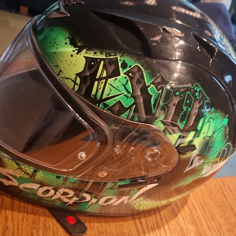 Pose og begge visir følger med.