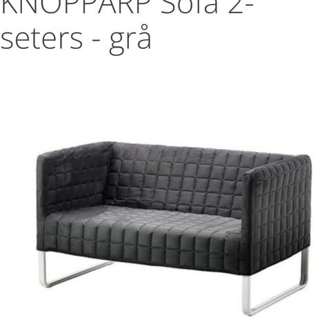 Selger en enkel og komfortabel 2-seters sofa i grått stoff. Perfekt til hybel, kjellerstue, gjesterom eller som en ekstra sofa.