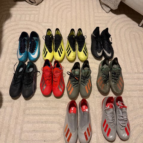 Fotballsko i størrelse 44. Første par er innesko, andre par fotballsko, begge er lite og pent brukt. Fjernet bilde av de som er solgt. Selges for 500kr per stk.