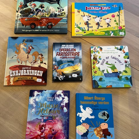 Pent brukte bøker til barn og ungdom selges for 50kr pr stk