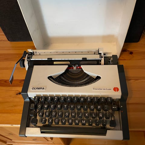 Underwood mekanisk skrivemaskin i svart metall. Modellen har klassisk tastaturoppsett med runde taster og manuell papirvalse. Egner seg som funksjonell skrivemaskin dersom den er i teknisk stand, eller som dekorativt objekt i interiør, kontor eller samling av vintage kontorutstyr.