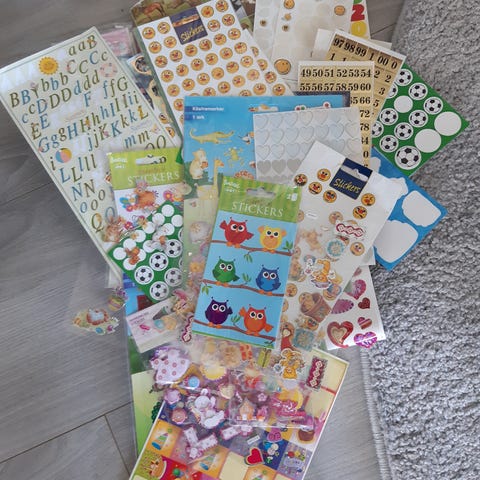 Some stickers are partially used and some are new.