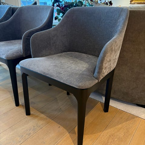 Stoffet er godt brukt. Vurderes rens evt omtrekk.