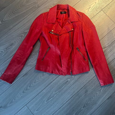 ONLY skinnjakke for dame i svart farge, størrelse 34. Jakken har glidelåslukking foran og ståkrage med trykknapper. Det er quiltede detaljer på skuldre og overarmer, samt en brystlomme med glidelås. Laget i skinnmateriale med paneler som gir en figurnær passform. Passer som ytterjakke i overgangssesonger eller til hverdagsbruk.