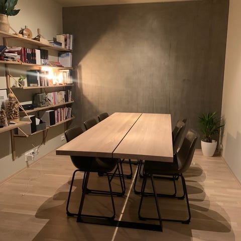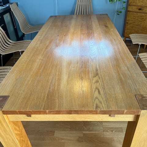 Pent og robust spisebord med ileggsplate fra Bohus kjøpt høsten 25. Fremstår nytt. Veldig praktisk da ileggsplaten ligger gjemt inni bordet.