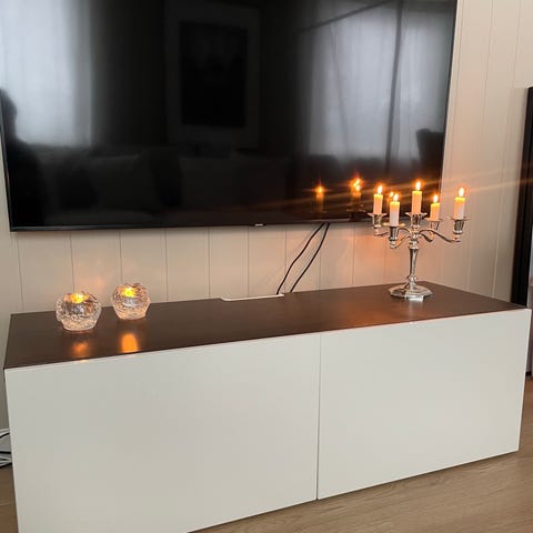 Selger en hvit og fin tv benk fra IKEA, Bestå. Den er hel, pen og veldig praktisk!