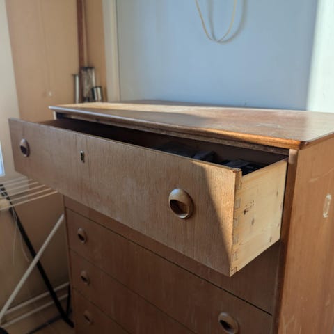 IKEA retro kommode fra 90-tallet med flere skuffer i trehvit utførelse. Kommoden har hvite håndtak og romslige skuffer som egner seg til oppbevaring av klær, tekstiler eller diverse småting. Passer i soverom, gang, kontor eller andre rom der det er behov for ekstra oppbevaringsplass. Utførelsen er i tre med glatt overflate og rette linjer.