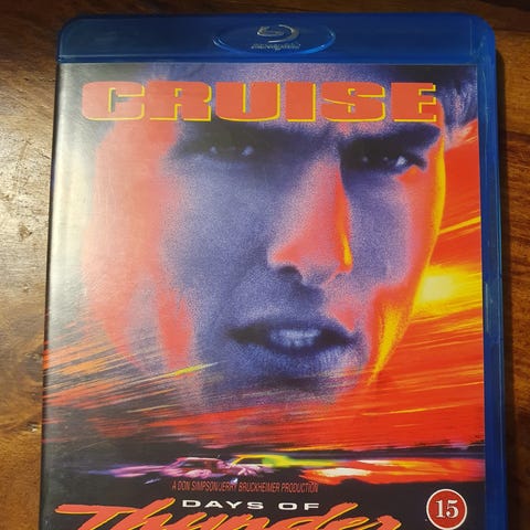 Blu-ray-utgave av spillefilmen «Days of Thunder». Disken leveres i standard Blu-ray-plastomslag med omslagsbilde. Aldersgrense 15 år (norsk klassifisering).