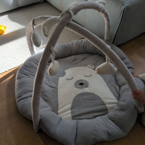 Teddykompaniet babygym rund grå blå med leker