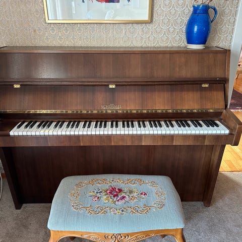 Har vært brukt til undervisning og opplæring. Et solid piano som tidligere har vært proffesjonelt stemt ved jevne mellomrom. God klang. Et lite sortement med noter kan følge med dersom ønskelig.