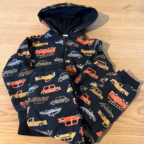Barneklær sett i størrelse 74 for unisex. Flere todelte sett med genser og bukse i ulike flerfargede mønstre og nyanser. Passer til hverdagsbruk for barn rundt størrelse 74. Inkludert ull.
