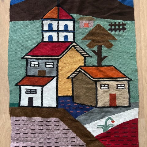 Veggteppe Skandinavisk vintage, håndvevd i ull fra 70-tallet selges hbo 1200,-