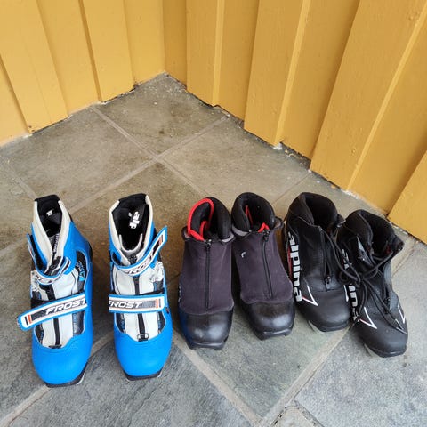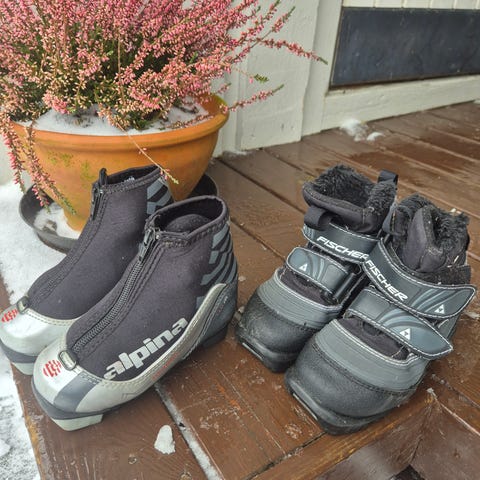 Ett par i svart med turkise detaljer, snøring og glidelås foran samt isolert innside. Størrelse 33
