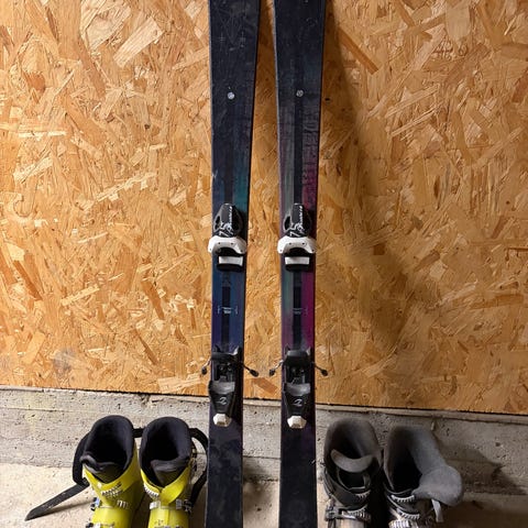 Nordica Hot Rod Igniter TI alpinski med integrerte bindinger. Skiene har midtbredde på 76 mm (76 W) og er konstruert med titanal (TI) for økt stabilitet. Design i brune og røde toner. Det følger også med alpinstøvler fra Nordica i størrelse rundt 45 og et par skistaver, men spesifikke størrelser og lengder fremgår ikke tydelig av bildene. Utstyrspakken passer til alpint bruk i bakke. Sendes ikke, må hentes!