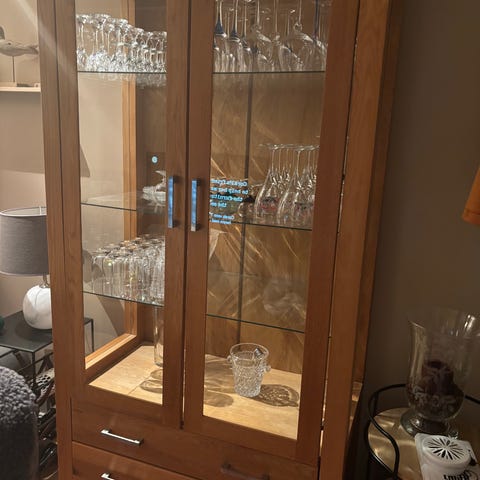 Fint brukt heltre eik vetrineskap og skjenk selges pga flytting.