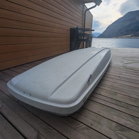 Hvit skiguard 850 skiboks til salgs for en billig penge!