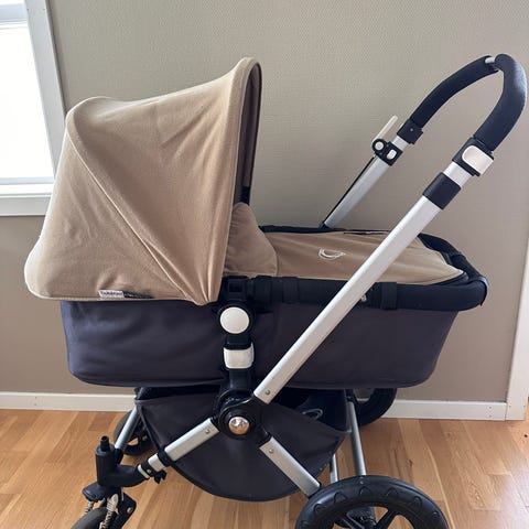 Bugaboo cameleon kjøpt brukt og vært brukt til sovevogn i 1år. Har ikke prøvd å slå den sammen, men fungerer fint å trille. Brems på håndtaket.