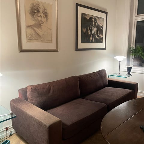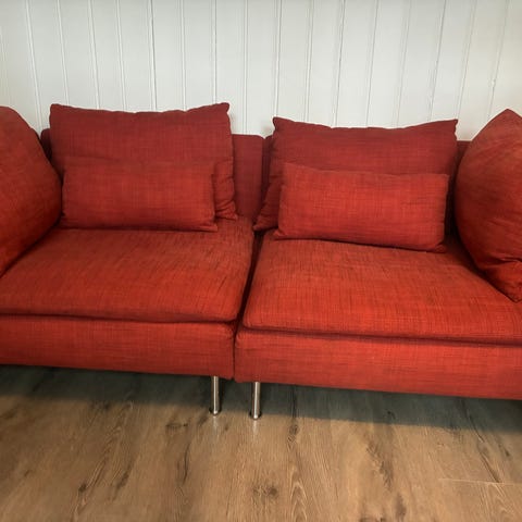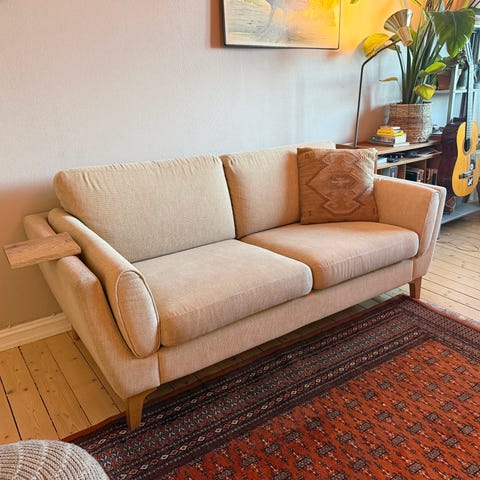 Kjøpt nesten ubrukt på Finn i 2022, pent brukt i 2,5 år av meg, blitt stående ubrukt nå det siste året. Sofaen er i veldig god stand og har mange år igjen å leve. Første eier kjøpte den i 2021 for 4990kr.