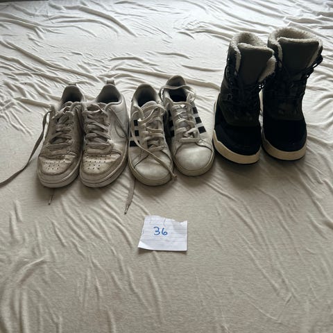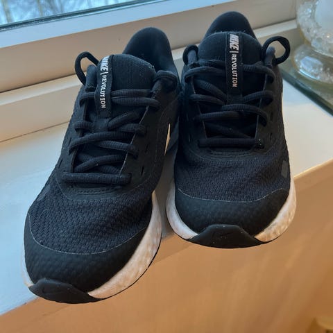 Nike joggesko for barn i størrelse 34. Nesten ikke brukt. Modellen er unisex og har svart overdel med hvit såle og hvit Nike-logo på sidene. Lukkes med lisser. Egnet som hverdagssko eller til lett aktivitet for barn i aktuell skostørrelse.
