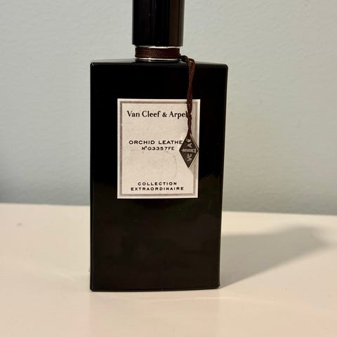 Van Cleef & Arpels Bois Doré parfyme. Duft i mørk flakong med etikett foran. Passer til bruk ved ulike anledninger. Unisex-duftserie fra Van Cleef & Arpels Collection Extraordinaire-linjen.