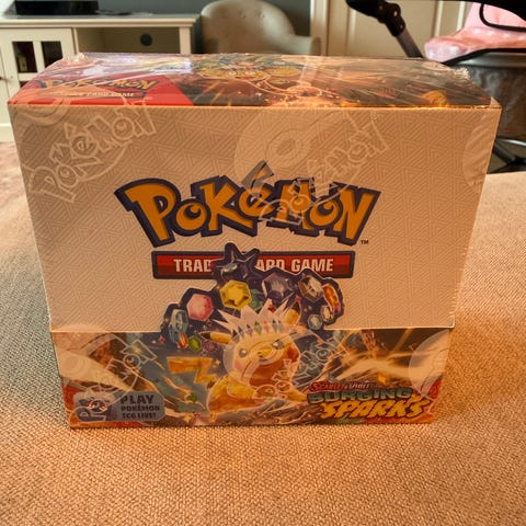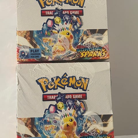 Selger en Surging Sparks booster box. Denne har rift på siden (se bilde)