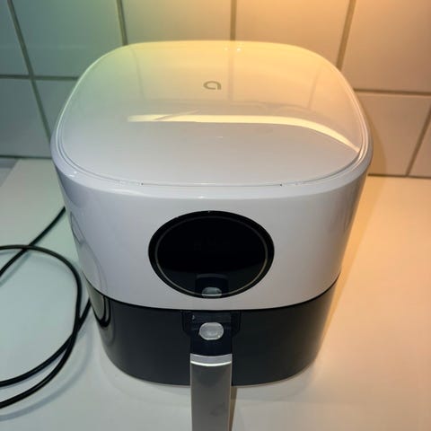 Bright airfryer i svart utførelse. Modellen har manuelle brytere for temperatur og tid på frontpanelet. Egnet til tilberedning av ulike typer mat med mindre olje enn tradisjonell frityrsteking. Enheten har uttakbar kurv/skuff og strømledning med jordet støpsel. Passer til bruk på kjøkkenbenk i hjemmet.