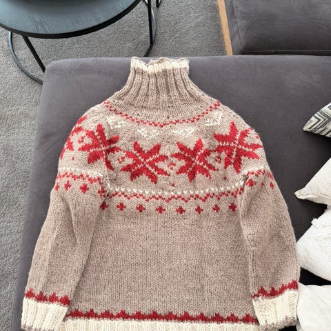 Håndstrikket genser i Alafoss lopi med dobbel tråd. Veldig varm og tykk genser.