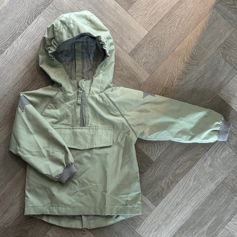Anorakk fra Reflex i strl 104 som passer godt til både vår og høst! Ingen skader, kun antydning til flekker på lomma på magen samt en liten flekk på armen som vist på bilde. Vært så fornøyd med denne 😄