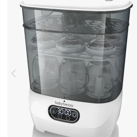 Dr. Brown’s Electrical Sterilizer & Dryer er en elektrisk sterilisator som dampsteriliserer og tørker tåteflasker og babyutstyr i én og samme syklus. Den er kompatibel med både standard- og wide neck-flasker og kan romme inntil 6 flasker samtidig. Betjenes via kontrollpanel med flere programknapper på fronten.