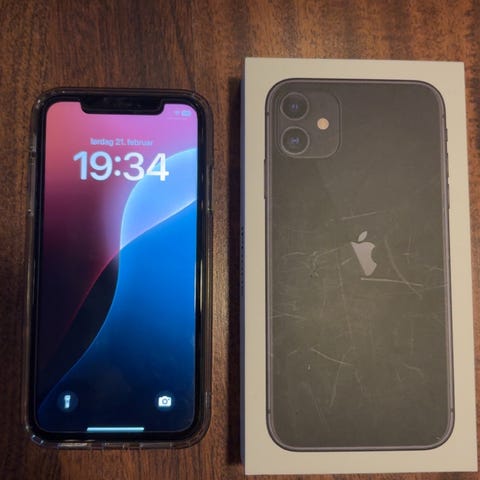 Phone 11 med 64GB lagringsplass.