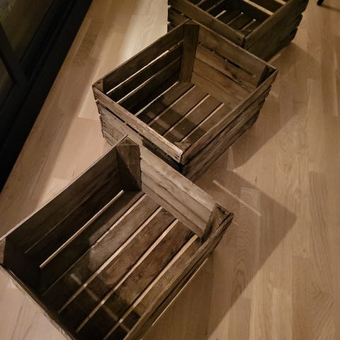 Sel fruktkasser frå kring -60. Naturleg slitasje, solid treverk. Ulike størrelser. Kan hjelpa ifrt frakt.