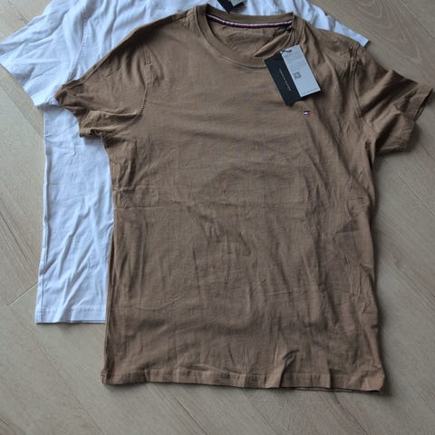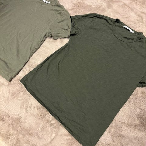 Farge: 2 av T-skjortene er Olivengrønn og den tredje er Gulbrun.