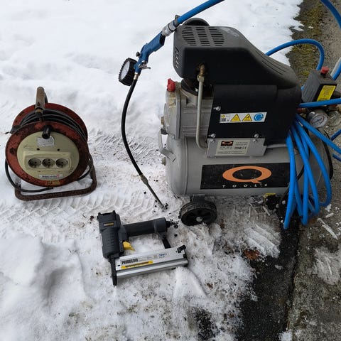 Luftpåfylleren er ødelagt, så den følger ikke med, men blåsepistol medfølger.