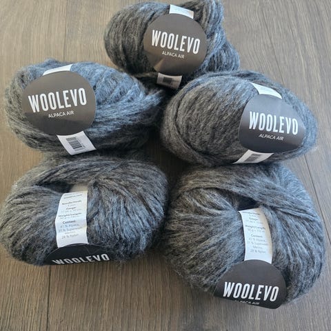 Woolevo garn i brun farge. Har igjen ett par nøster etter en genser. Vurderte å strikke en lue med tre tråder (dobbel tråd woolevo wool light og en tråd kid mohair), men har ikke tid til alle mine garnfantasier så selger disse.