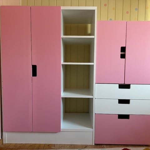 Meget pent brukt skap med 3 skuffer og 3 hyller, perfekt til barnerom.