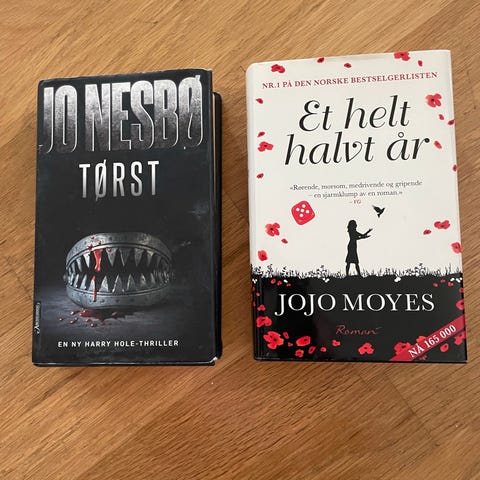 1) Jo Nesbø – «Tørst» (Harry Hole-roman). Innbundet bok på norsk.