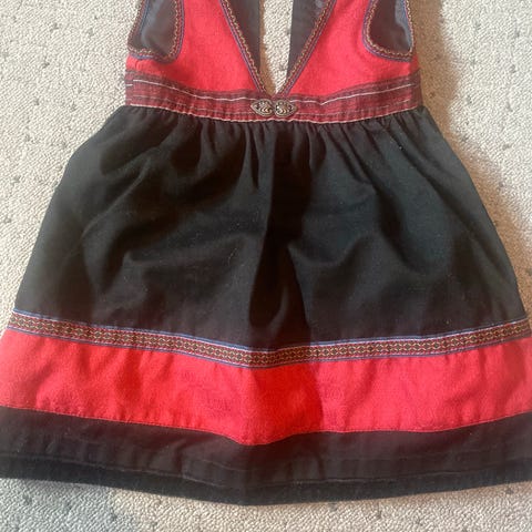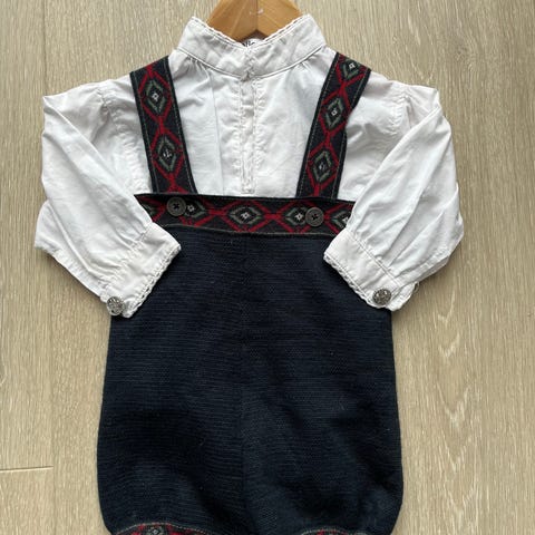 Pent brukt festdrakt-inspirert babysett, perfekt til 17. mai eller fest.