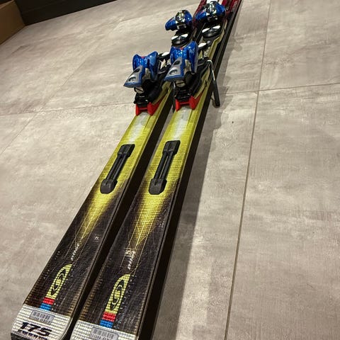 Salomon Crossmax 9X alpinski i lengde 175 cm. Skiene har integrerte bindinger fra Salomon, med justerbar hælbinding. Overflaten har flerfarget design med blant annet blå, rød og gul dekor. Undersidene er glatte med sort såle. Egner seg som carvingski/alpinski til bruk i preparerte bakker. Passer for voksne eller større ungdommer, avhengig av høyde og ferdighetsnivå.