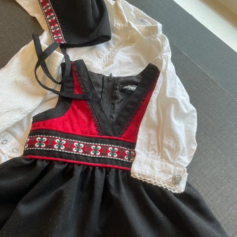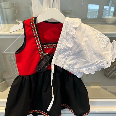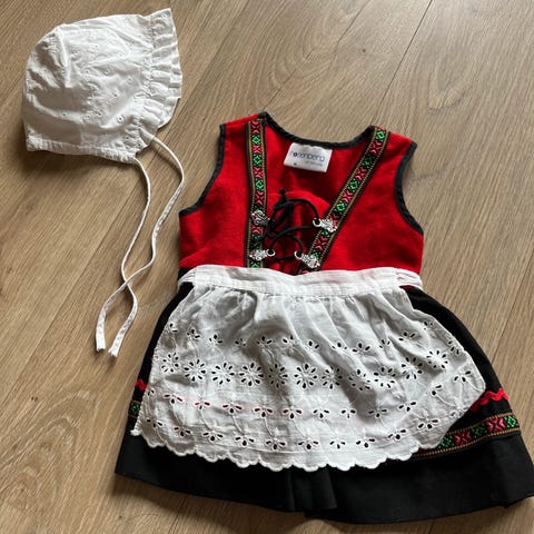 Nydelig festdrakt til jente i strl 62. Lua er ubrukt og i strl 0-6 mnd